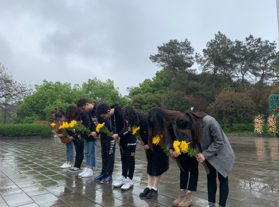到达革命烈士纪念碑,在统计系党支部书记韩丹华的主持下扫墓活动正式开始。每一位党员手捧菊花,庄重的鞠躬,把菊花轻轻的放在了纪念碑前,表达了对先烈的深切哀悼和无尽的敬仰之情。