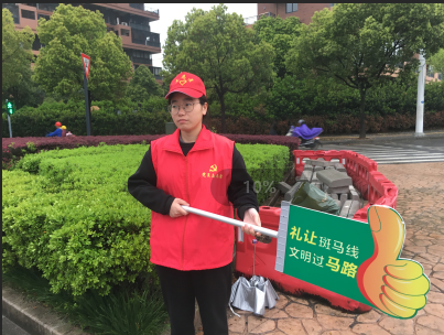在上下班高峰期时,志愿者们头戴红色志愿服务帽,手拿文明劝导牌,志愿者协助交警指挥、疏导交通,劝阻和制止行人不遵守交通规则、乱穿马路等不文明交通行为,对行人不按交通信息灯通行,在斑马线上逗留等不文明行为进行劝导等。时刻提醒行人:文明礼让,安全出行;多一份谦让,少一份拥挤。