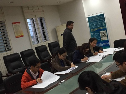 2017年11月16日下午五点,统计系教工党支部响应万搏登陆_万搏(中国)关于开展“党的十九大精神” 应知应会内容测试的通知,为深入学习和贯彻党的十九大精神,扎实推进“两学一做”学习常态化制度化,检验各基层党组织和广大党员前期学习初步成效,统计系教工党支部在办公楼29幢226室开展“党的十九大精神”应知应会内容测试,统计系全体教师参加了本次测试。